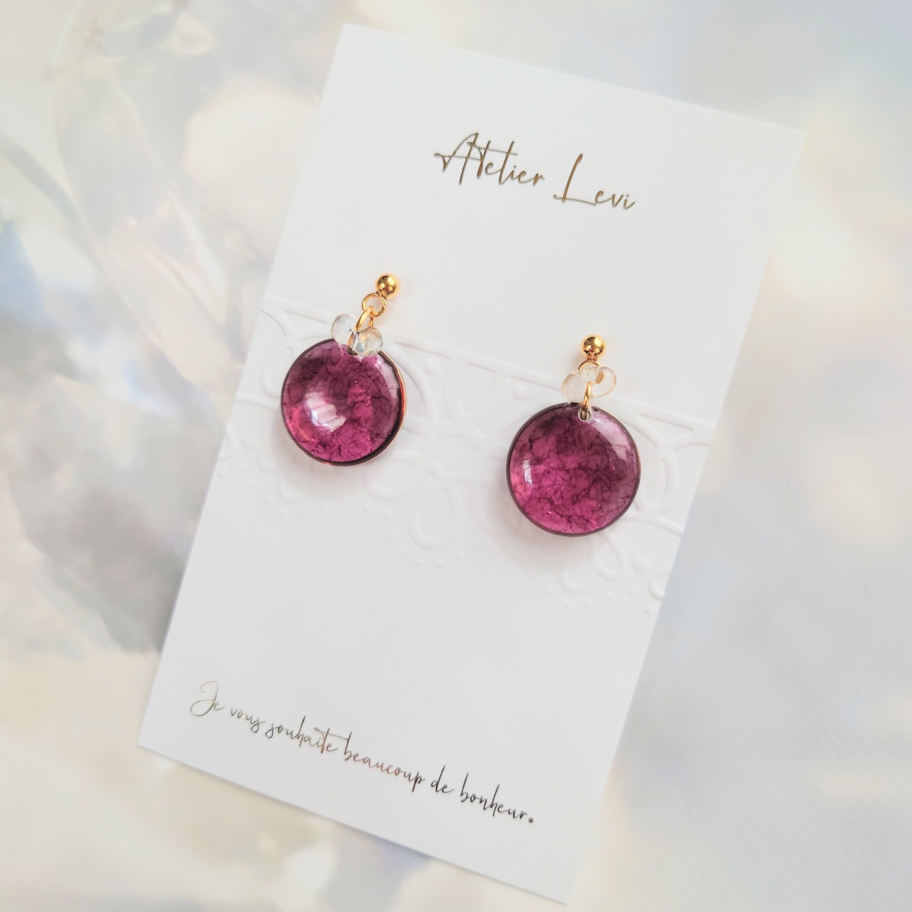 アルコールインクとレジンを使用しています。 光が当たると水面のようにきらきら・うるうるとしてキレイです。 普段使いにちょうどいいシンプルなデザインになっております。 サージカルステンレスなので金属アレルギーの方も安心です。 カラー:Rose 粒サイズ:約1.5cm ピアスorイヤリング 対応可能です。 オプションで選択をお願いします。 ピアス:シリコンダブルキャッチ イヤリング:クリップイヤリングシリコンカバー